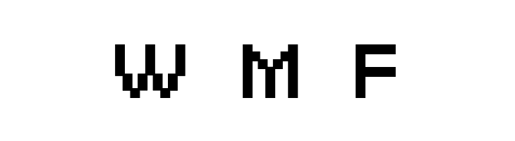 A bold, pixelated font with a shaded, three-dimensional effect.