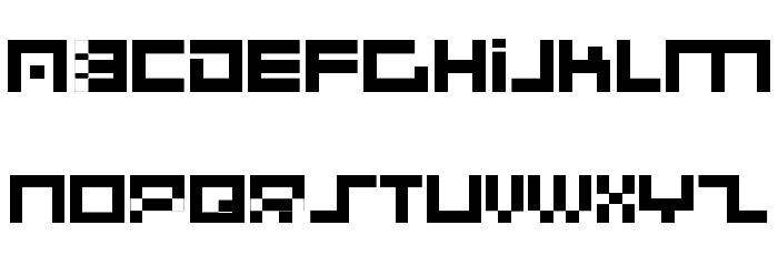 A bold, geometric font with a digital, pixel-art style from Uncategorized fonts.