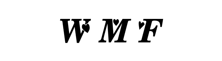 A playful, heart-adorned font with bold, rounded outlines.