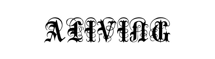 A decorative blackletter font with intricate flourishes and a gothic style.