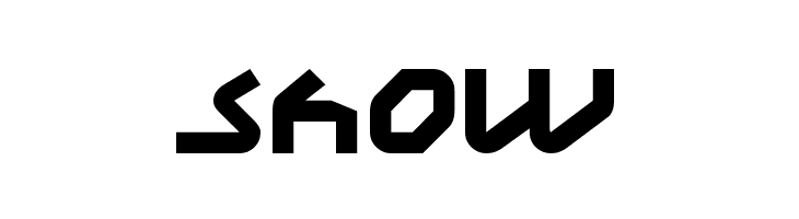 A bold, geometric font with angular shapes and a futuristic style.