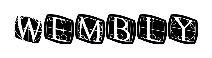 A decorative, geometric font with uppercase letters in framed designs.