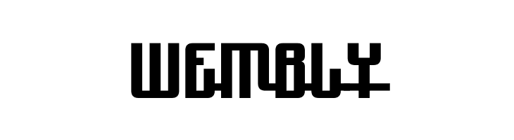 A bold, geometric font with outlined characters and a modern, dynamic style.