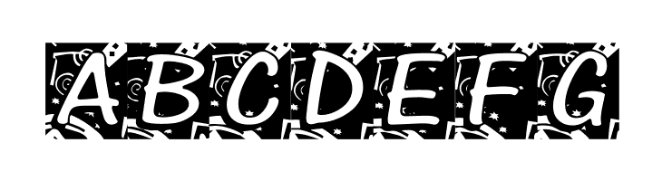 A playful, bold font with rounded, bubble-like characters enclosed in shapes.
