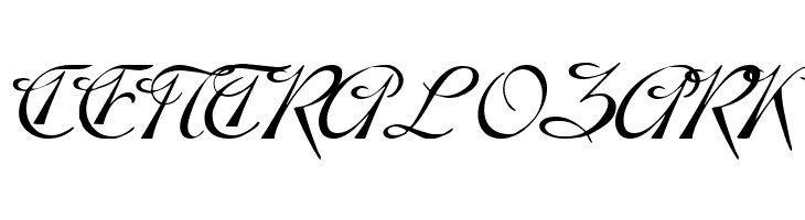 A decorative, calligraphic font with swirling, expressive strokes.