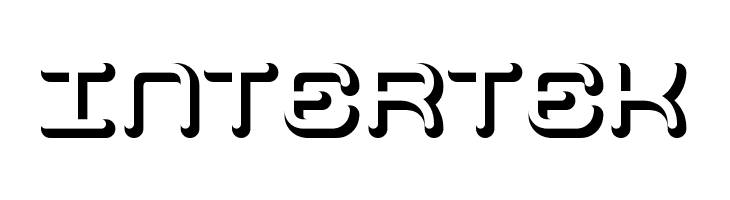A futuristic, geometric font with a stencil-like design and bold, rounded edges.
