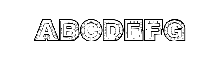 A bold, industrial-style font with a 3D effect and rivet details.