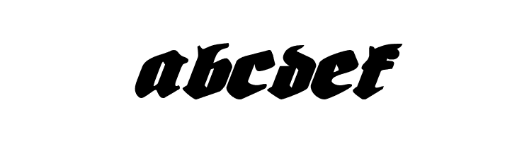 A bold, shadowed, italic font with a dynamic, gothic-inspired style.