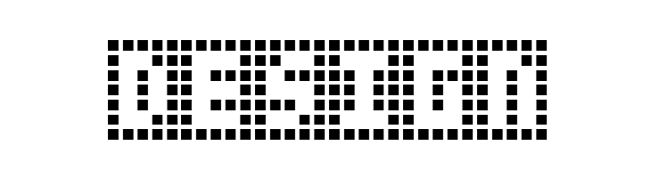 A grid-based, pixelated font with a digital and futuristic style.