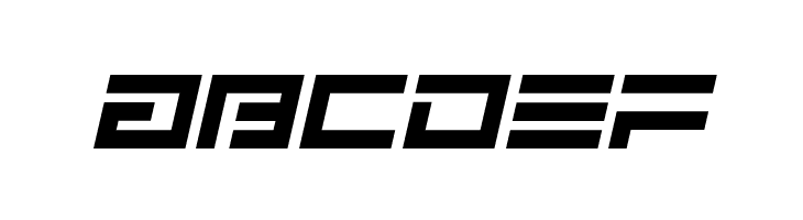 A futuristic, angular font with an italic slant, inspired by LED displays.