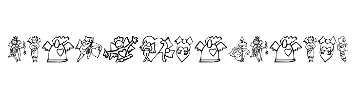 A decorative font with heart-themed designs and floral motifs, perfect for romantic projects.