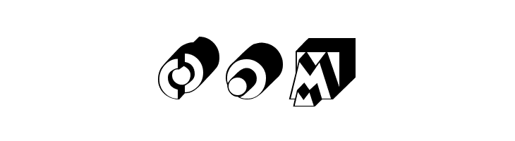 A bold, three-dimensional geometric font with a strong shadow effect.