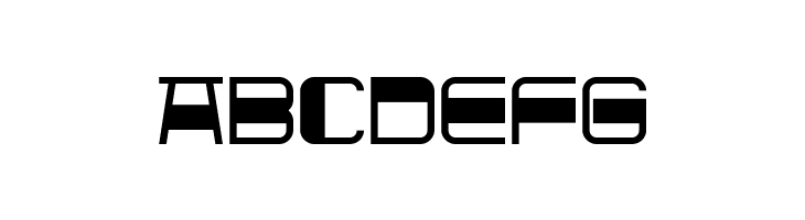A bold, futuristic font with geometric shapes and unique character elements.