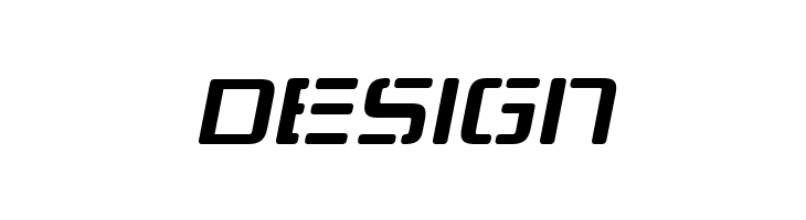 A futuristic, italicized font with angular, geometric characters and a sleek design.