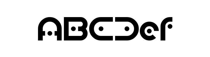 A futuristic, geometric font with bold, rounded letterforms and unique cutouts.