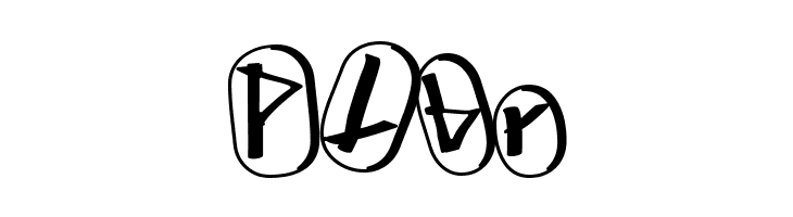 A rune-inspired, decorative font with bold, hand-drawn characters enclosed in ovals.