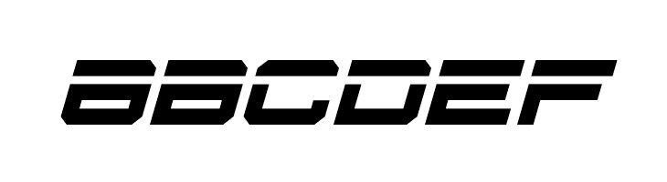 A futuristic, angular italic font with a bold and geometric style.