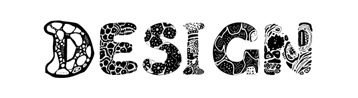 A bold, decorative font with intricate patterns and playful doodles.