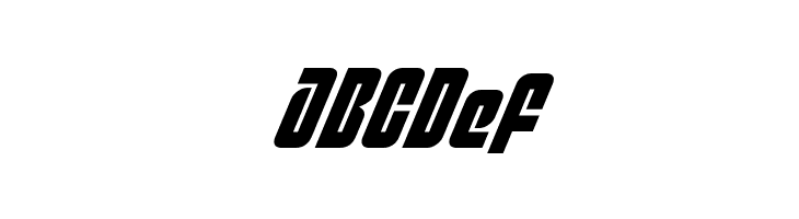 A futuristic, bold italic font with geometric shapes and smooth curves.