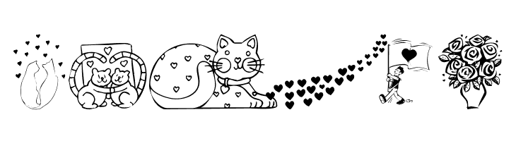 A decorative font with romantic and whimsical illustrations.