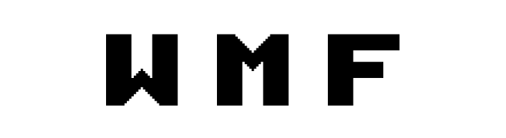 A geometric, pixelated font with a digital, retro gaming aesthetic.