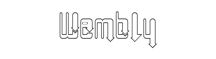 A modern, decorative font with arrow-like elements and an outlined style.