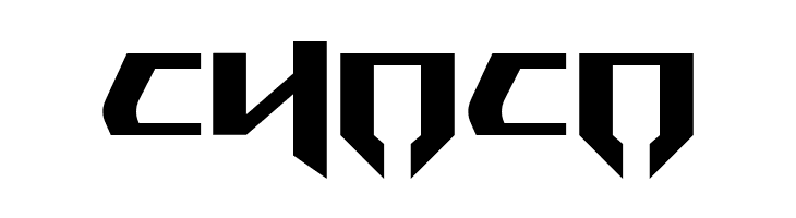 A bold, futuristic font with sharp, angular lines and geometric shapes.