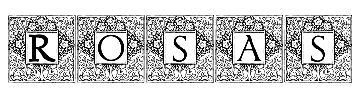 A decorative font with bold uppercase letters framed by intricate floral designs.
