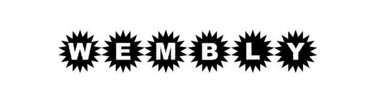 A bold, decorative font with characters encased in starburst shapes.