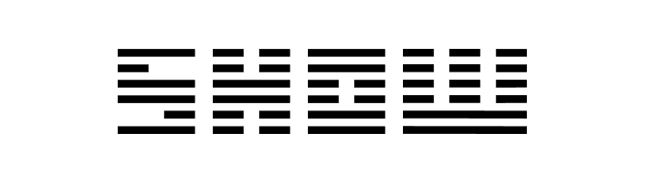 A futuristic, segmented font with bold, horizontal stripes.