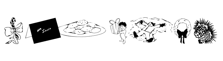 A decorative font with Christmas-themed illustrations replacing standard characters.