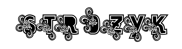 A bold, decorative font with intricate floral embellishments.