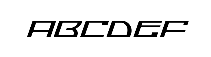 A dynamic, futuristic italic font with angular, geometric characters.