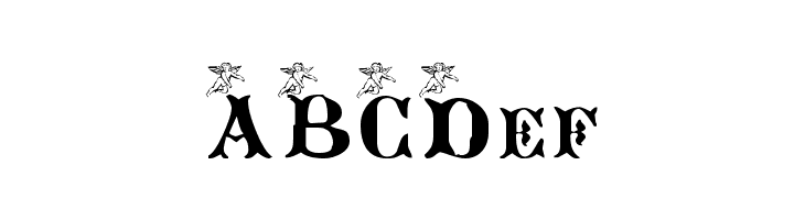 A decorative font with whimsical, angelic motifs and bold, stylized characters.