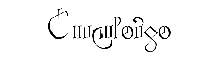 A bold, outlined font with a medieval and gothic style, featuring intricate and decorative characters.