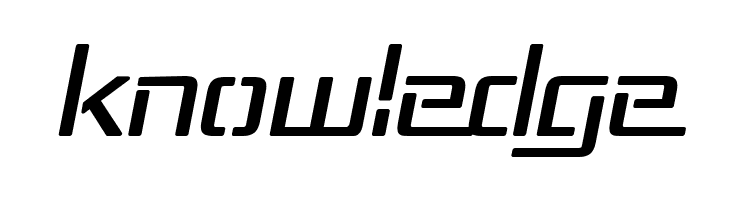 A futuristic, italicized font with angular, geometric characters and a sleek design.
