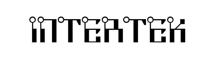 A modern, circuit-inspired font with geometric shapes and circular nodes.