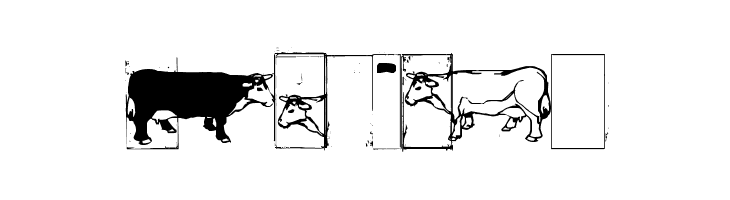 Decorative font with cow illustrations.