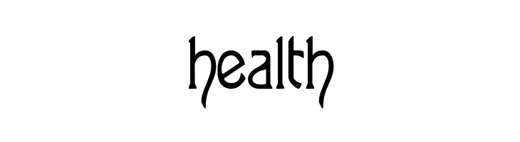 A bold, decorative font with angular lines and intricate swirls.