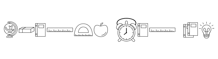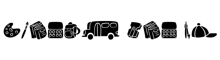 A playful dingbat set featuring educational and office-themed icons.