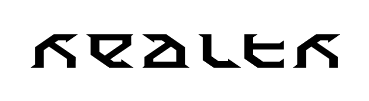 A bold, futuristic font with sharp, angular edges and geometric styling.