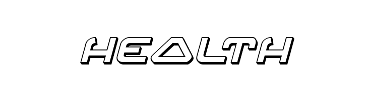 A futuristic, 3D italic font with outlined characters and geometric shapes.
