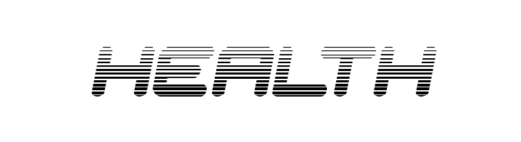 A bold, futuristic font with a striped, gradient-like design.