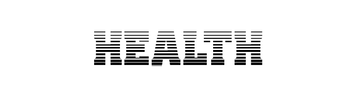 A bold, striped font with diagonal lines creating a modern, dynamic look.